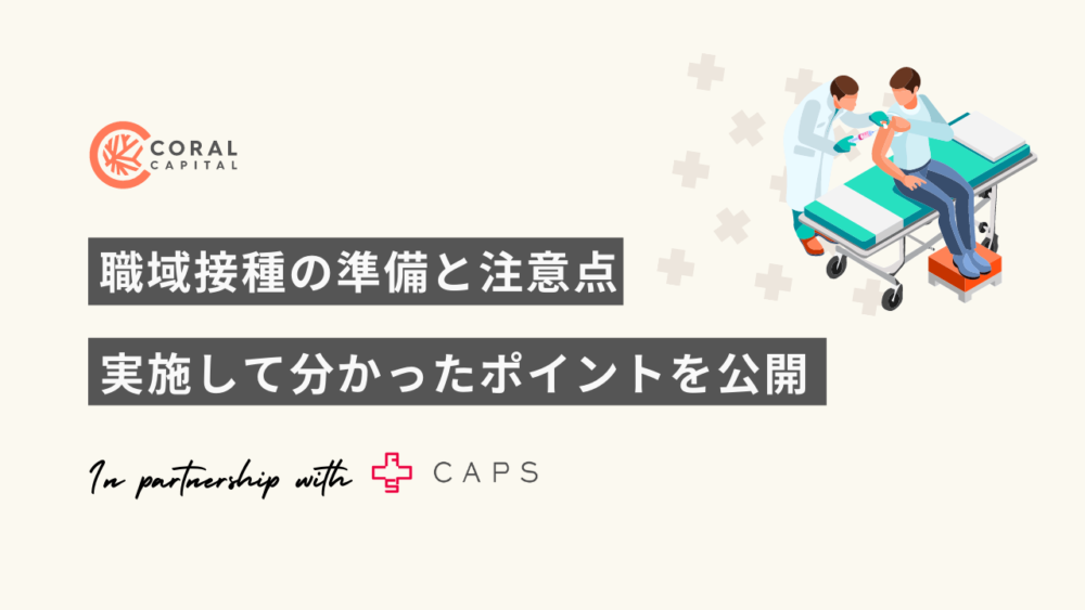 以上、申請準備から予約受付、実際の接種日のオペレーションまで含めて、Coral CapitalとCAPSグループ主導によるスタートアップ合同接種で気づいたことや注意点を共有させていただきました。これから職域接種、特に合同接種をされる方々の参考になれば幸いです。