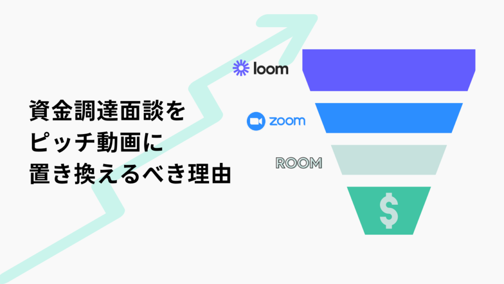 コロナ禍の中、この資金調達方法は「Loom、Zoom、Room」というフレーズで親しまれるようになるほど普及しました。おかげで、起業家は限られた貴重な時間を段階的に、少しずつ使えるようになりました。まずはしっかりしたピッチ動画を1つ作り、次に真剣に興味を持ってくれた相手とだけZoomミーティングを行い、ファネルの最後に残ったリードとだけ直接会って面談するといった流れです(コロナ禍ではこの最後のステップは必要ないかもしれませんが、それはまた別の議論として置いておきます)。