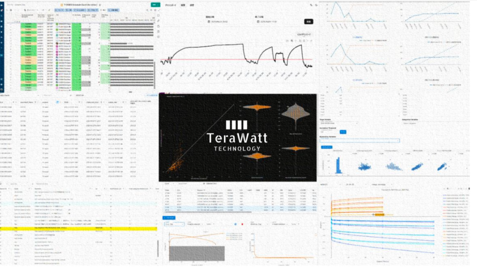 この課題に対して、かつて1990~2010年代に日本の電池技術を牽引した第一線の電池ロボットエンジニアを集結させ、彼らと新世代の電池エンジニアやIT/AIエンジニアを一つのチームに融合してきたスタートアップがあります。それが次世代電池スタートアップのTeraWatt Technologyです。TeraWattは過去6年間で、新設計電池の開発から量産までを一気通貫で行える複数の物理拠点を国内に構築してきました。同時に、これらの拠点から生成される全データを、内製の「AI×電池」プラットフォーム「TeraSpace」上でコンカレント(同時進行)に処理する体制も整備しています。