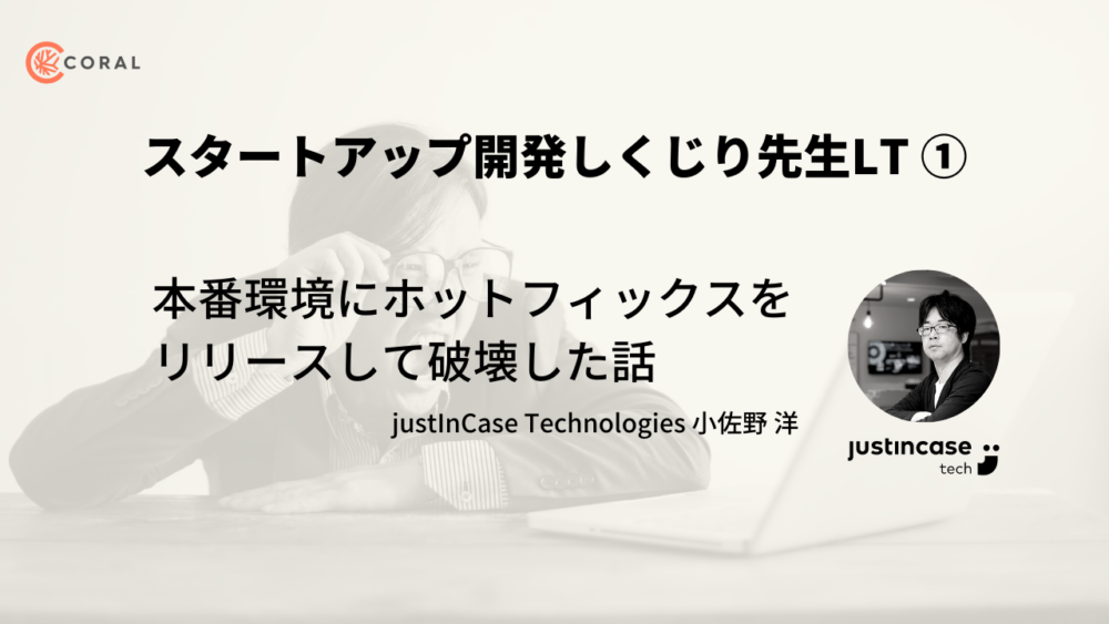 #Coral・投資先紹介本番環境にホットフィックスをリリースして破壊した話(justInCase Technologies):スタートアップ開発しくじり先生(1)