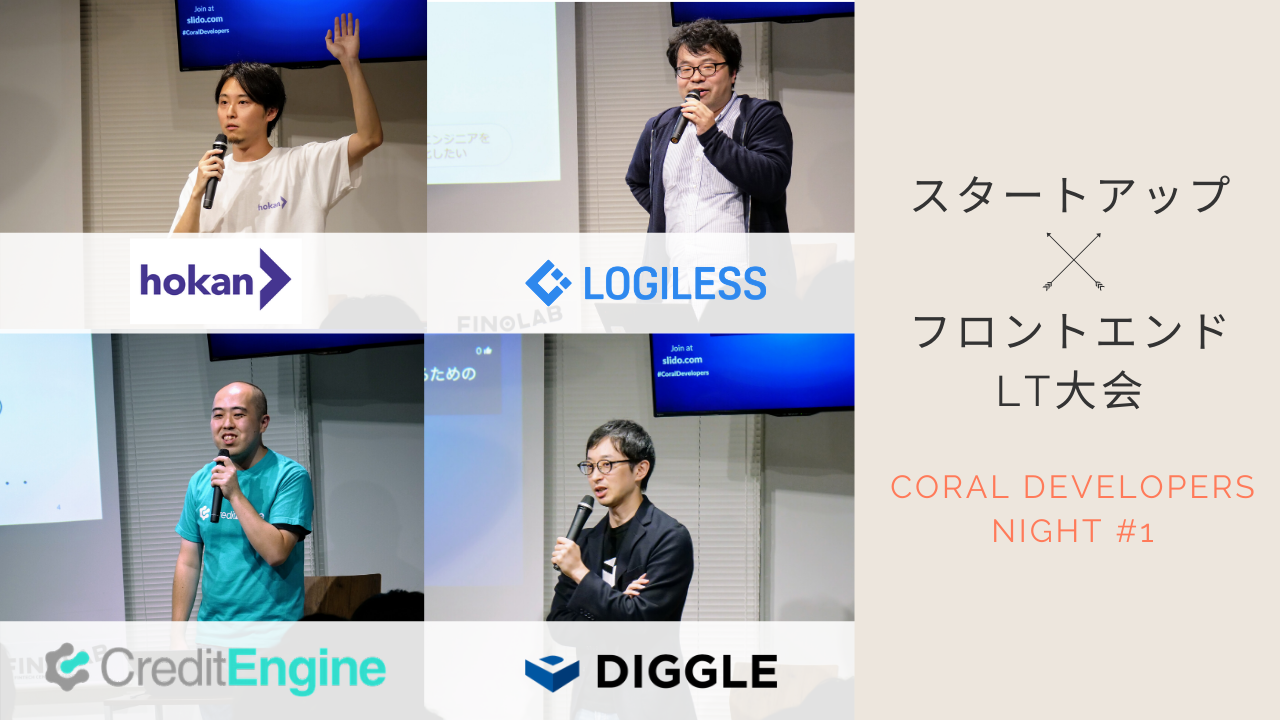 Articles#Coral・投資先紹介【動画】スタートアップ4社のフロントエンド LT大会―Coral Developers Night