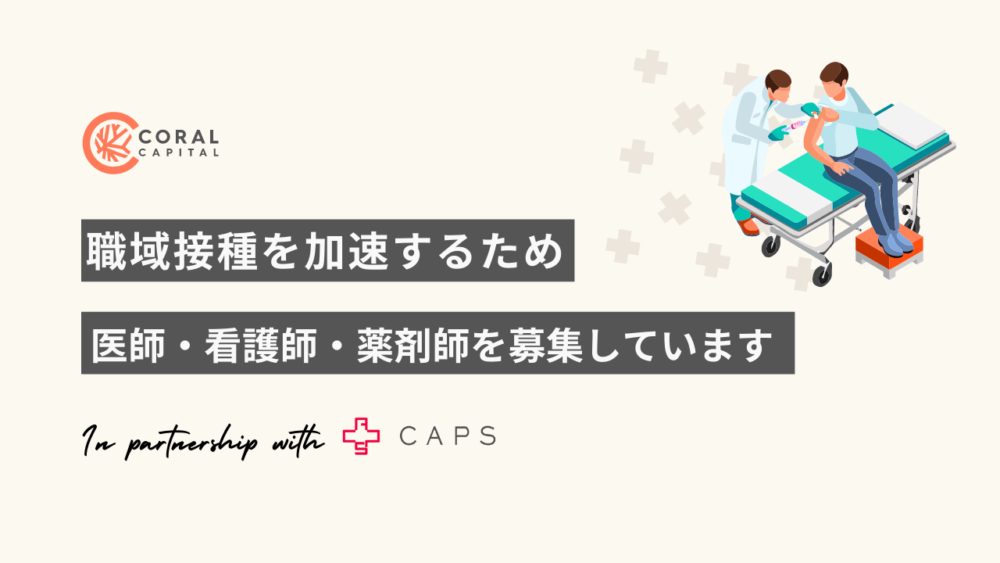 Articles#Coral・投資先紹介職域接種を加速するために医師・看護師・薬剤師を募集しています